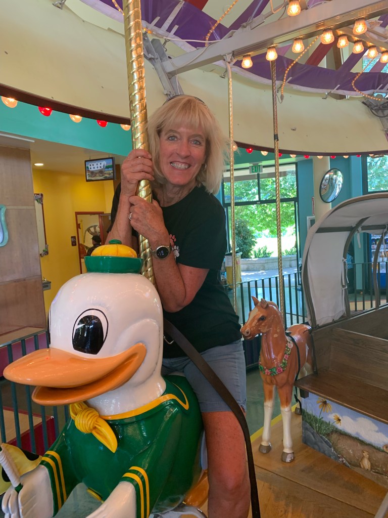 After some lunch and wine tasting, we went to the carousel by the waterfront. It’s the one place I’ve always wanted to go to every time we pass Salem to the coast, along with the Salem station, and get to go to. So since we have the whole day, it’s like “why not”. So we went there! One of the animals on the carousel is the Oregon duck. Mom is probably the most well-known duck fan next to my best friend Emily and my boyfriend Brennan. And I saddled up in a horse in front.