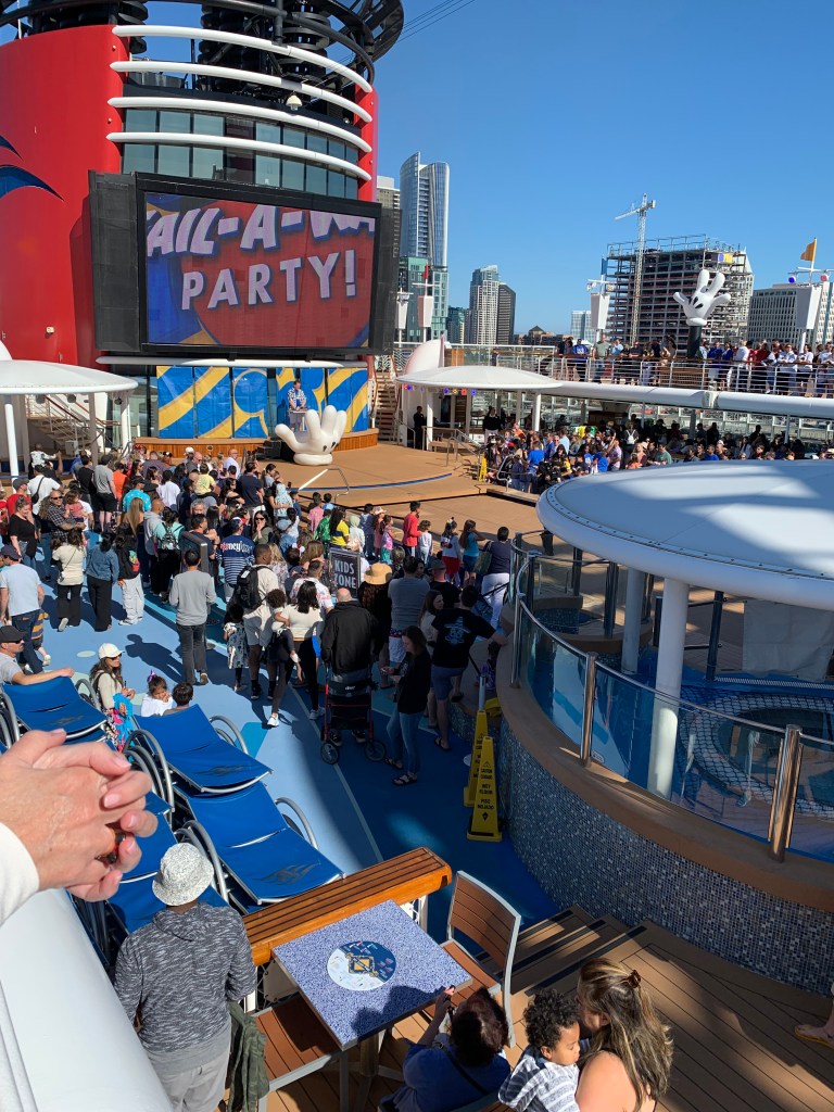 Right after the drill, the whole herd went up to decks 9 and 10 for the deck party and the memory of the deck party was very vague. I do remember dodging the camera when it was filmed at us. But this time, I notice some changes. Number one, there’s a kids zone on deck, I don’t remember that but I like the idea. Number two, unlike 8yo me where I only knew High School Musical songs, I recognize a lot of the songs playing for the deck party.