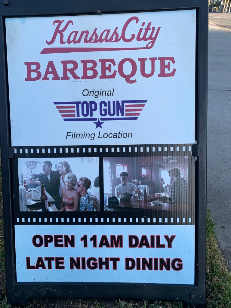 The story goes is the location director of Top Gun was searching for places to film in downtown San Diego back in 1985. He stopped at this little unknown place called Kansas City BBQ for a beer and liked this place. He told the main director, whom contacted the place to get permission to film in there and the rest is history. Fun fact, the bar scene in Top Gun: Maverick was not filmed at Kansas City BBQ, it was a set that was built on a beach. Which makes sense because the bar in the squeal is twice as large as the bar area at Kansas City BBQ and can hold more people. But Miles Teller did take a photo with the infamous “Great Balls of Fire” piano, which has moved from the main eating area to the bar area.