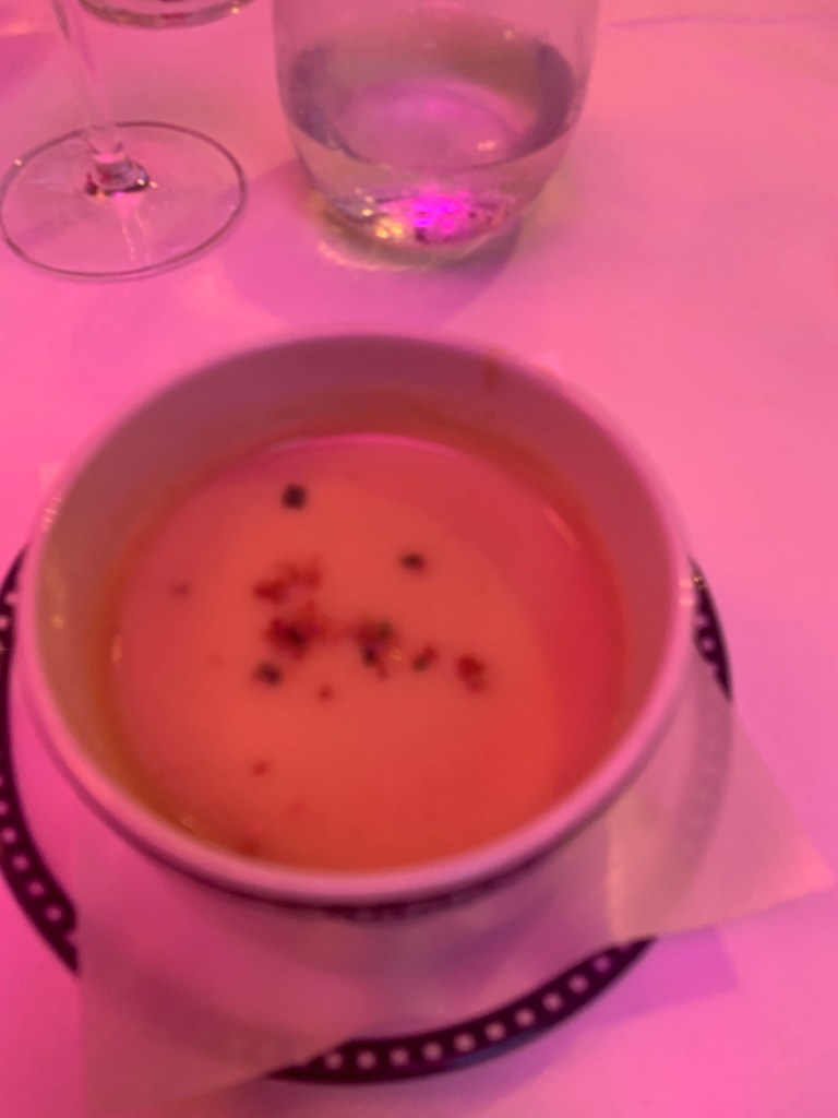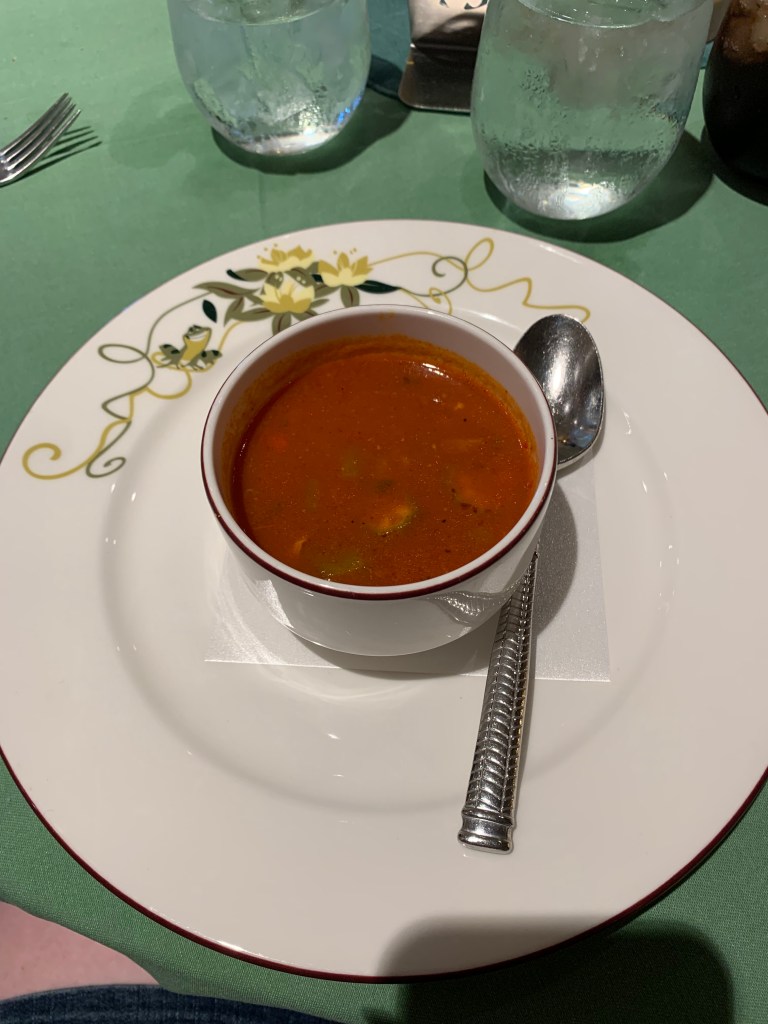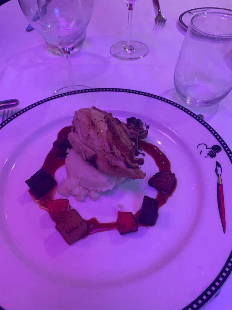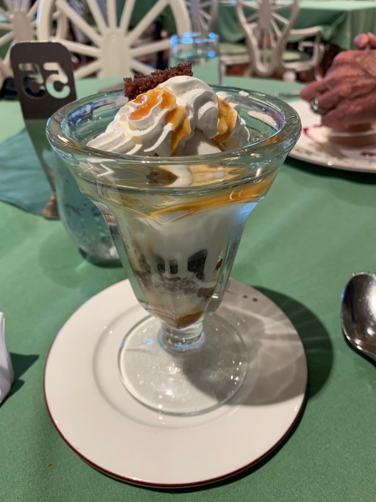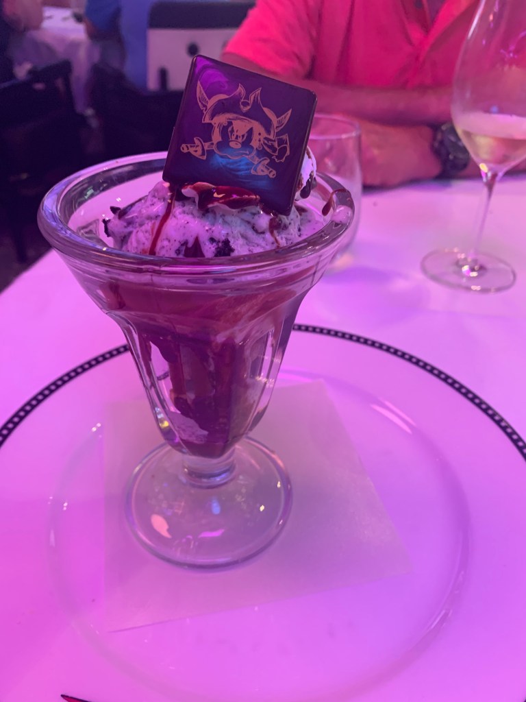 For dinner, we went to Animator’s Palate, where we had a show after dinner. I had the Serrano ham, potato soup, chicken, and the sundae. The ham was surprising how they did it, it’s almost like a charcuterie board and it was also good too. For the sundae, there was a chocolate chip cookie at the bottom which was very interesting.
