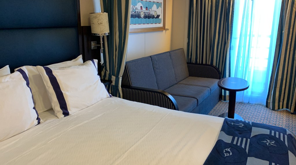 As I was wrapping up with the self-guided tour, my mom texted through the Disney Cruise app saying that my room is ready. I wouldn’t say it’s exactly what I remembered but it was nice. But no graduation gift of a sort, ding dang. I couldn’t help but laugh at the shower because I know that Brennan would have a hard time taking a shower in it due to his 6’4” height.