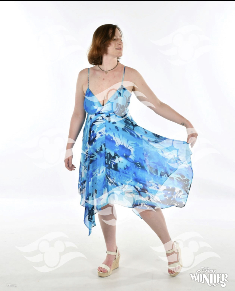 While getting ready for dinner, I tuned in to channel 29 to watch the show Disney Dreams. While watching, it jogged my memory big time and I remember that show! It was one of two shows we watched the last DCL cruise. The dress I wanted to wear for Tiana’s for dinner was too showy to where it’s showing my bra. So I just dolled up a bit with the outfit I was wearing anyway.