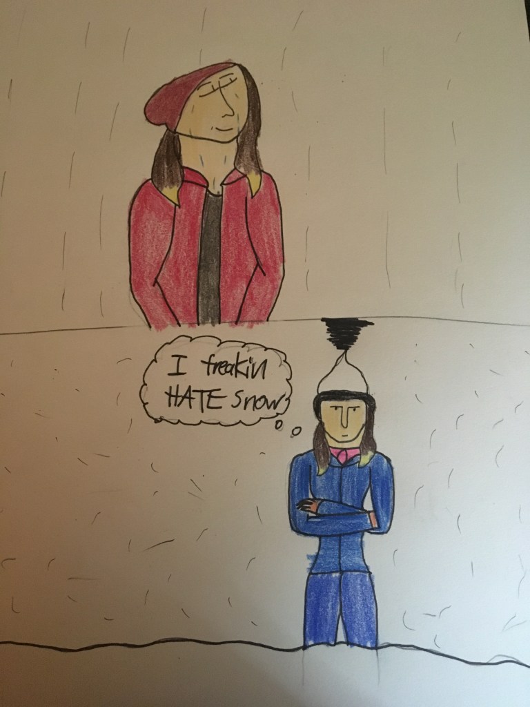 This was a drawing I did in late 2019 when I first moved to Portland. And it’s true I hate snow and like the rain. I mean, I don’t mind it since I’ve been living in the area for a while now. Why do I hate snow? It’s almost like a weather nuisance outside of Christmas. In the Cascades, snow comes in the right time, sometime a little early; as early as September. But the snow just sticks around in March and April, which is why we don’t have a proper spring as we do down in the valley. But in 2017 and 2019, we had a terrible snowstorm that caused school cancellations. 2017 was the worst with approximately 2 1/2 days of school cancelations.